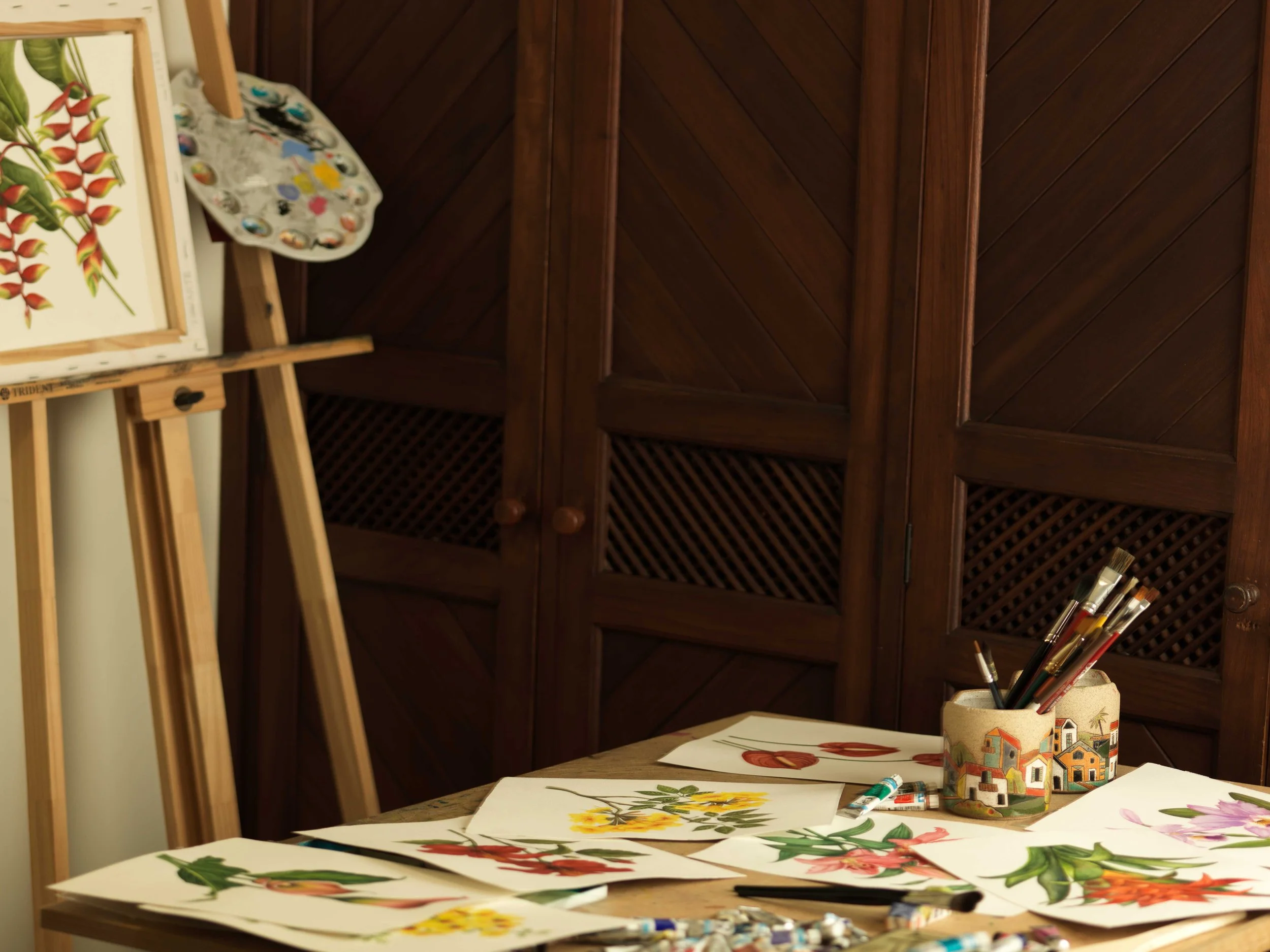 Bem-vindo ao atelier de pintura de Elynara Modenese, um espaço acolhedor onde a criatividade é livre para florescer. Venha se inspirar, aprender e criar conosco!